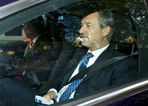 Tom Mockridge, the newly appointed CEO of News International, is driven from the headquarters of the company in London. Mockridge was appointed to immediately succeed Rebekah Brooks, Rupert Murdoch’s loyal lieutenant, who resigned.  (Photo by Anonymous / AP)