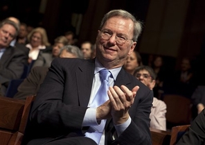Google CEO Eric Schmidt listens to President Barack Obama speak during the House Democratic Caucus retreat at the U.S. Capitol in Washington.