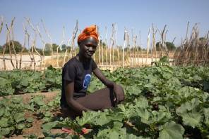 Achol Rec Ciman, a mother of a baby boy, got her plot in the EU-sponsored kitchen gardens provided through health and nutrition programs, where she cultivates a variety of vegetables. All women with children under 2 years old are eligible to join.