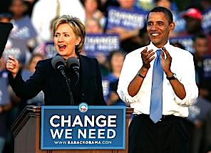 Sen. Hillary Clinton, D-N.Y., left, delivers a speech supporting Democratic presidential candidate Sen. Barack Obama, D-Ill., at a rally in Orlando, Fla.