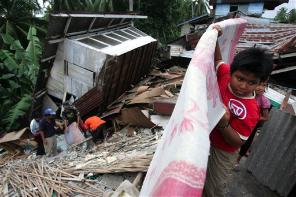 An Indonesian youth retrieves a matress from his house destroyed by a powerful earthquake in Bengkulu, Sumatra island, Indonesia. Three powerful earthquakes jolted Indonesia in less than 24 hours, triggering tsunami warnings, damaging hundreds of houses and sending panicked residents fleeing to high ground.