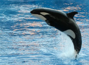 An orca jumps from within a large containment area near Orlando, FL  (Photo by Ed Schipul)