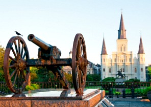 The cannon in Jackson Square, New Orleans is a model 1861 Parrot Rifle used in the Civil War. The cannon will retain it’s place in the square even while the New Orleans City Council has decided to destroy four other memorials of that war.