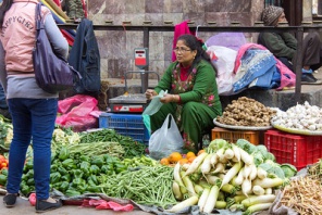 A vendor at Asan Tole bazaar in Kathmandu, Nepal.  (Photo by Matt Zimmerman) Photo used under CC BY
