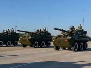 Myanmar military tanks roll in 2019. Myanmar’s military is joining forces with Indian rebels to fight anti-military People’s Defense Forces resistance groups that have spread across Myanmar since the Feb. 1 coup.