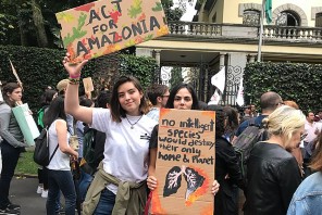 Environmental activists protesting the deforestation of the Amazon rainforest in Mexico City, Mexico. The destruction of the Amazon rainforest has proliferated under President Jair Bolsonaro, who has been under heavy scrutiny for ramping up deforestation after committing to curb deforestation.