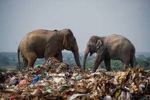 A herd of hungry wild elephants in eastern Sri Lanka has become totally dependent on eating plastic waste out of an open landfill - a practice that has killed around 20 in the last eight years.