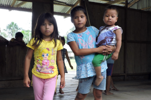 Young children on the Pacaya-Samiria National Reserve in Peru gaze at the camera in 2016. In a country battered by COVID-19-related deaths, at least 93,000 children have been left orphaned by the pandemic.