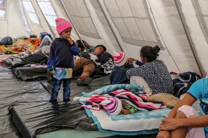 A child stands with his family in one of the three UNICEF temporal rest tents in Ecuador, where UNICEF has launched a regional response to support children and families from Venezuela. Half of the Venezuelans in Latin America can’t afford three meals a day, the UN refugee agency said.