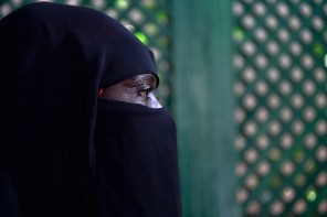 A survivor of sexual violence stares through her burka at a support meeting in Mogadishu, Somalia. “I don’t plan to return home even if the rains return. I am frightened and will keep at the Internally Displaced People’s camp,” she said.  (Photo by UNSOM) Photo used under CC BY