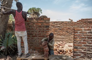 A Cameroonian man and his brother help construct a home at a refugee camp in Chad. Due to the 6-year conflict in Cameroon, 765,000 have been displaced, the International Crisis Group said.  (Photo by European Union, 2022 (photographer: Andrew CABALLERO-REYNOLDS)) Photo used under CC BY