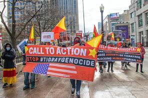 People in Columbus, Ohio, march to protest the conflict in Tigray in December. In a landmark case, Ethiopian troops are being accused of serious human rights abuses against Tigrayan rebels.