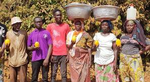 Cocoa farmers pose for the camera in Zabzugu, Ghana. A Dutch NGO is helping the people of Ghana develop sustainable farming methods despite dying trees and increased droughts.