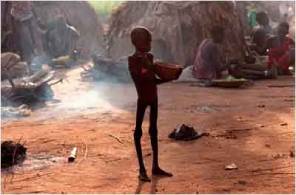 A young Sudanese child suffering from malnutrition stands in the middle of a camp. About 9 million people in Sudan are currently in need of aid, a number that could double by September as a result of poor harvests, economic crisis, internal conflict and the Russian invasion of Ukraine, the UN has warned.  (Photo by Filipe Moreira) Photo used under CC BY