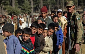 Local Pakistani kids wait in line to receive a toy as part of a Toys For Tots program. About 3.3 million of Pakistan’s children are trapped in child labor, depriving them of their childhood, their health and education, and condemning them to a life of poverty, according to UNICEF.