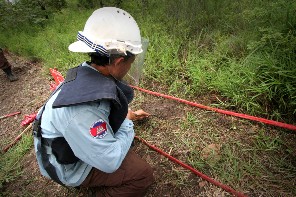 A worker from the Cambodian Mine Action Center follows correct procedures before detonating a landmine with C4 explosive. Between 1979 and 2021, landmines and other explosive remnants of war claimed 19,805 lives in Cambodia, the world’s largest amputee population, according to the Cambodian Mine Action and Victim Assistance Authority.