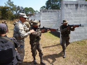 Guatemala’s Interagency Task Force trains with a staff sergeant from Georgia’s National Guard on weapons handling as part of efforts to combat transnational crime organizations.