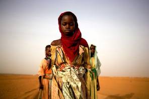 Young Sudanese girls leave an IDP camp to gather firewood for their families.  (Photo by Ron Haviv/VII) Photo used under CC BY