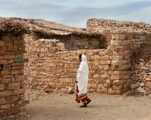 A woman walks through a village in the Tigray region of Ethiopia.  (Photo by Rod Waddington) Photo used under CC BY