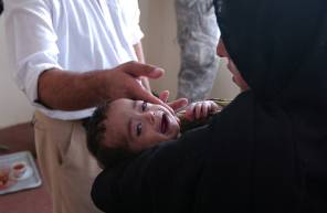 Severely malnourished and significantly underweight, 8-month-old Marzia cries out in her mother’s arms in Farah Province, Afghanistan.  (Photo by 2nd Lt. Karl Wiest/U.S. Air Force) Photo used under CC BY