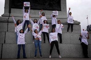 Women protest in London in solidarity with Mahsa Amini, an Iranian woman arrested, and subsequently died in custody, for not wearing a hijab in public.