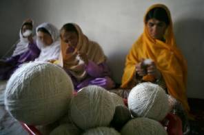 Disabled women weave at a women empowerment workshop in Pakistan.  (Photo by Hashoo Foundation USA) Photo used under CC BY
