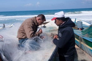 Fishermen repair fishing nets in Gaza.  (Photo by Pablo Xandri) Photo used under CC BY