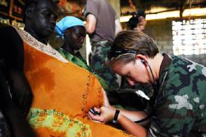 Lt. Candace D’Aurora of the U.S. Navy listens for the heartbeat of a Haitian woman’s unborn child during a health assessment.  (Photo by Mass Communication Specialist Seaman Apprentice Joshua Adam Nuzzo/U.S. Navy) Photo used under CC BY