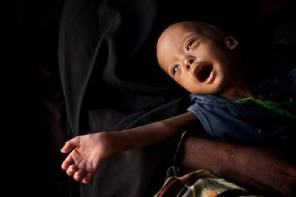 A malnourished baby in a Kenyan hospital.  (Photo by Colin Crowley) Photo used under CC BY