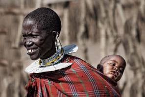 A Maasai mother carries her young child in Tanzania.  (Photo by Noel Feáns) Photo used under CC BY