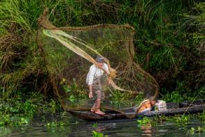 A fisherman on Majuli Island in Assam, India.