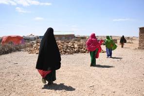Women walk in drought-hit Salaxley village in Somalia.  (Photo by Ilyas Ahmed/UNSomalia) Photo used under CC BY