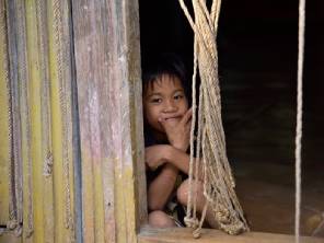 A young Filipino boy hiding from the sun in Lazi Church.  (Photo by MarPa87) Photo used under CC BY