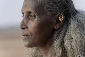 A displaced Tigrayan woman stares into the distance.  (Photo by Adane Firde/IOM Ethiopia) Photo used under CC BY